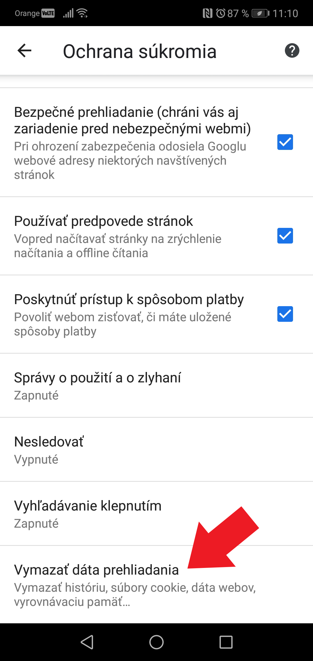 3. Tu stlačte "Vymaz. údajov prehliad."